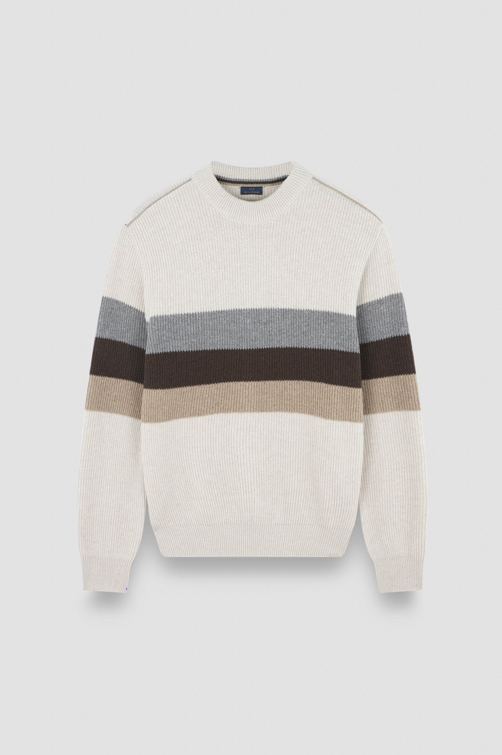 A statement graphic design, a timeless silhouette and a cosy ribbed texture. This garment is knitted from Re-Wool: a blend of luxuriously cosy regenerated wool, cementing Paul & Shark’s commitment to circular consumption. Styled with ribbed trims and intarsia stripes that bring a dynamic edge to any look.